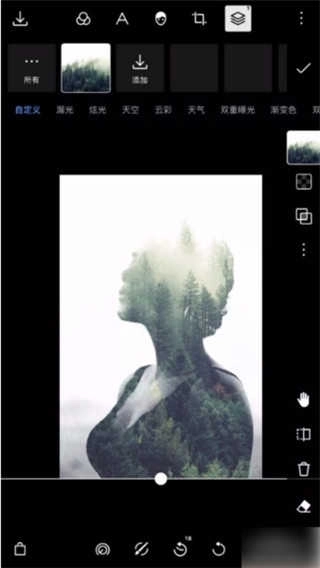 首先呢,把泼辣修图完整版的应用给启动了,然后选一张照片当作最初的背景。接下来,把图层面板打开,进入到多重曝光那个部分,从里面挑一张图像当作叠加的纹理。