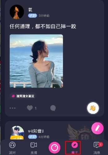 1、在圈子页面中点击要私聊的头像;