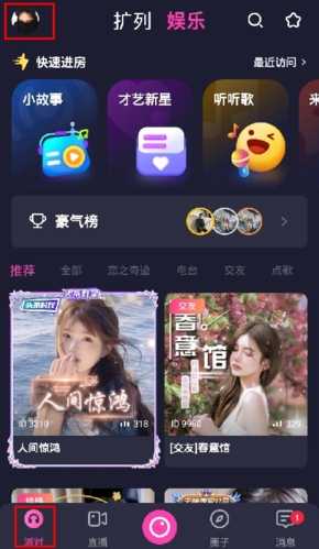 1、在派对页面中点击左上角的头像按钮;