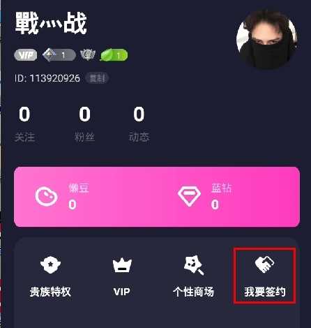 2、在个人页面中点击我要签约按钮;