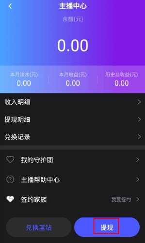 3、在主播中心点击提现按钮就可以提现了。