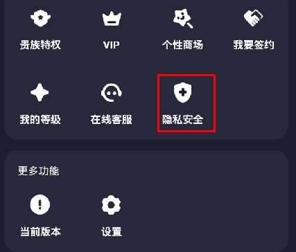 1、在个人页面中点击隐私安全按钮;